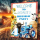 Farm birthday party welcome poster size 16x20 inches. Personalise with child's name in blue to welcome guests to the party. Add his, or her, age at the bottom corner. Red gingham checks background, with sunflowers, blue tractor, pile of hay, bull and cow image. The design is perfect for a little boy's farm themed birthday of any age. You may change the size as long as the dimensions are similar. No text should be near the edges. You may also choose to download this design to print your own poster.