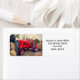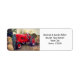 Farm tractor red country moving rustic autumn return address labels. Cute custom fall farming scene with sunflowers and cornstalks. Personalise your typography. Image copyright Marg Seregelyi Photography.