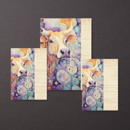 Watercolor cow, decorative and fun. You can replace 1 or more of the cows or upload photo.