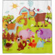 Farm With Horse, Pig, Sheep, Rooster, Goat, Bull Shower Curtain