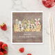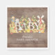 Adorable farmers market baby shower napkin featuring a scarecrow, lamb, bunny chick, windmill, barn, tractor & fruits & produce set on a rustic wood background. Cute invite for a farmers market baby shower theme. Visit our shop to view our farmers market collection.