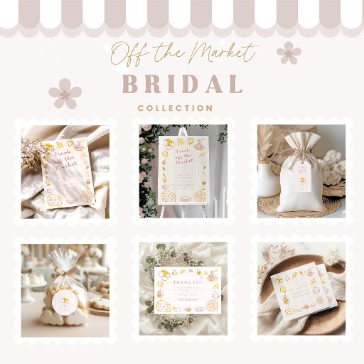 elebrate the bride-to-be with this fun and charming "Fresh Off the Market" bridal shower invitation! Featuring playful hand-drawn illustrations of farmers market favourites like cheese, pizza, wine, garlic, and fresh produce, this design captures a whimsical and casual vibe. Soft pink stripes add a sweet backdrop, making it perfect for a rustic, Italian, or foodie-themed bridal shower.