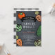 This chic and cute gender-neutral baby shower by mail invitation features a black chalkboard background with vegetables such as tomato, carrot, cabbage and cucumber. The reverse side features a white background with black buffalo/gingham check patterns. Personalise for your needs. You can find matching products at my store.