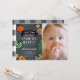 This chic and cute 1st/first birthday photo invitation features a black chalkboard background with vegetables such as tomato, carrot, cabbage and cucumber. The reverse side features a white background with black buffalo/gingham check patterns. Personalise for your needs. You can find matching products at my store.