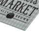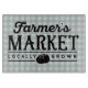 Farmhouse / Country home decor featuring "Farmer's Market - Locally Grown" black stencil overlay on pastel grey and white gingham chequered background