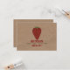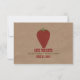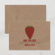 A wedding save the date featuring wrinkled brown paper image background on front and back. Front features an illustration of a strawberry. Personalise the red and green text.