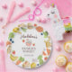 Bring farm-fresh vibes to the table with this Farmer’s Market plate. A ring of colourful, hand-drawn fruits, veggies, and bakery goodies pops against a crisp white centre where you can add any name and date. Perfect for garden parties, produce-themed birthdays, or brunch with friends.