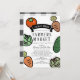This chic and cute gender-neutral baby shower by mail invitation features a white background with vegetables such as tomato, carrot, cabbage and cucumber. The reverse side features a white background with black buffalo/gingham check patterns. Personalise for your needs. You can find matching products at my store.