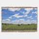 Beautiful farm themed throw shows things a farmer loves to see. Beautiful blue skies and a field full of recently baled hay that will put his animals through the winter months.