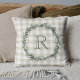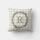 Farmhouse Beige Buffalo Plaid Wreath Monogram Cushion