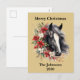 Farmhouse Black Christmas Horse Wreath Poinsettia Holiday Postcard