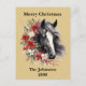 Rustic charm—personalised horse Christmas postcard featuring a regal black horse framed by a red and brown farmhouse wreath and festive poinsettias, this card captures the beauty of country living at Christmas. Perfect for horse lovers, farm families, and anyone who loves the country. Watercolor horse design.