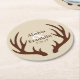 Farmhouse Brown Antlers Bride & Groom Wedding Date Round Paper Coaster