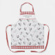 This apron features a cute chicken pattern over a white background with a red and white check pattern lining the top and bottom section of the apron. Customise with your name, set in a classic, simple font. The perfect housewarming, holiday and friend gift!