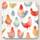 Cute and happy farmhouse chickens, cosy, colourful and rustic style drawing.