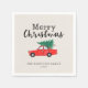 Accent your Christmas party with this charming farmhouse themed paper napkin. The design is accented with a vintage watercolor graphic of a red car hauling a fresh cut Christmas tree on top. Handwritten style calligraphy reads "Merry Christmas" with custom text for your family name.