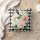 Farmhouse Cottage Watercolor Black Buffalo Check Floral Throw Pillow. Cotton available. Pink and White flowers.