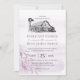Farmhouse chic, lavender watercolor and rustic country barn with windmill invitation. Black and white, scenic farm sketch wedding invitation with typography style text and editable accent colour has an elegant and charming style.