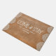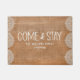 A modern rustic 18x24 door mat that really makes you feel welcome. A great gift for newlyweds or new homeowners, our custom come and stay doormat is in an elegant burlap and lace with "Come and Stay" in a modern, rustic handwritten font. Personalise with your family name in classic white lettering. Designed for you by Blackberry Boulevard.
