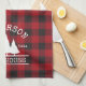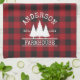 Family Name Farmhouse Red Buffalo Plaid with Pine Trees Kitchen Towel