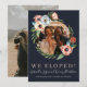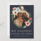 The perfect way to announce that you eloped! This announcement features a gorgeous farmhouse floral wreath surrounding a photo of the bride and groom. The back of the announcement also features a photo. Please contact me if you would like help with customising this elopement announcement.
