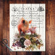 Cute, Duroc pig and her piglet behind a purple and pink floral bouquet. Farmhouse country, vintage, victorian, lettering signage on a worn, white, wooden board background. Perfect for a rustic farmhouse or french country vibe, especially doing decoupage crafts.