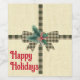 Lovely holiday bottle labels feature a country farmhouse style vintage plaid ribbon and bow with winter pine branch and berry embellishment on cream burlap background. Customisable "Happy Holidays" greeting text