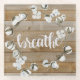 Farmhouse Inspiration II by Jennifer Paxton Parker. Features the word "Breathe" in cursive alongside a cotton wreath and wood plank background.