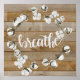 Farmhouse Inspiration II by Jennifer Paxton Parker. Features the word "Breathe" in cursive alongside a cotton wreath and wood plank background.