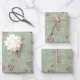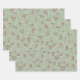 Farmhouse country laurel green, red and white foliage, wreath, leaves, rustic pattern cute holiday gift wrapping paper sheets. Set of 3.