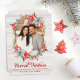 From the Farmhouse Poinsettia Christmas & Holiday Collection: Farmhouse Poinsettia Married Christmas Newlyweds Photo Holiday Christmas Card, with Beautiful Bouncy Calligraphy Script Font "Merry Everything" Holiday Greeting, and Personalised Family Name. Easily Add your holiday photograph and text to this gorgeous Christmas Card Template. In 4 different colorway options, this option features a beige cream wooden background colour, and pretty watercolor poinsettia and greenery background on farmhouse white ship-lap wood! A classic and rustic combination that will wow all your family and friends who receive their card this year!