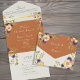 Capture the rustic elegance of your love story with our all-in-one wedding invitation, blending modern flair with boho charm. Adorned with rustic watercolor pink flowers against an orange backdrop, this invitation evokes the warmth of fall. Your custom photo graces the design, infusing it with personal touch and timeless romance. Inside, discover all the essential wedding details and RSVP information. It's the ideal choice for couples seeking a refined yet relaxed celebration, where every detail speaks to the beauty of the season and the depth of your connection.