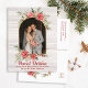 Farmhouse Poinsettia Modern Arched Newlyweds Photo Holiday Postcard