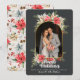 Farmhouse Poinsettia Newlywed Arched Wedding Photo Holiday Card
