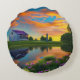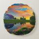 Farmhouse Purple Roof Pond at Sunrise Round Cushion