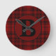FARMHOUSE RED GINGHAM CHECKERED PLAID ROUND CLOCK