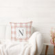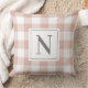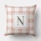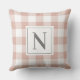 Farmhouse Rose Pink Gingham Check Plaid Monogram Cushion