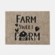 Welcome your guests to your home with this rustic, farmhouse style welcome mat. Text is in a rustic style and is accented with hearts, barn and a rooster. Design is on a simple, distressed jute (burlap) background and is personalised with your name. You can easily personalise your welcome mat using Zazzle's easy to use design tool. Would make a perfect gift for Newlyweds, New home or for anyone who loves the farmhouse style.