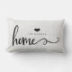 This elegant, rustic farmhouse style pillow says "home" in trendy script typography, and has a spot for your name along with a heart.