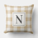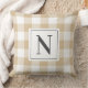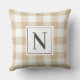 Farmhouse Tan Grey Gingham Check Plaid Monogram Cushion