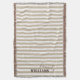 Farmhouse tan stripes cotton comfortable throw blanket with a custom family name in a decorative font. Check our store for more matching items.