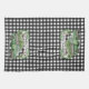 This farmhouse style kitchen towel features an all over black and white gingham check pattern with a Vintage green truck. A banner just above the truck can be personalised with a name.