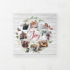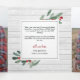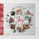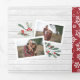 Add a total of thirteen photos to this rustic elegant holiday photo card design in a unique trifold layout adorned with a farmhouse inspired white wood plank background and sprigs of green watercolor leaves and red holly berries. Front holds eight square photos in a festive wreath shape with "joy" in the centre in red brush lettered typography. Personalise the inside with a custom pre-printed message or "year in review" update letter.