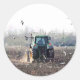 Preparing for the next crop. The tractor ploughs (ploughs) the field and wild birds look for food in the freshly turned soil. Watercolor England.