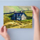A pretty watercolor of a Welsh stone farmhouse nestling in the mountains of Wales UK.