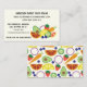 The bold, modern design on these business cards is perfect for farmstands, csa businesses and other sellers of fresh fruits and vegetables. It features a clean, cream background with a simple illustration of an assortment of fruits and vegetables and your own custom text in bold black printing. The reverse side has a coordinating pattern of fruits and vegetables.