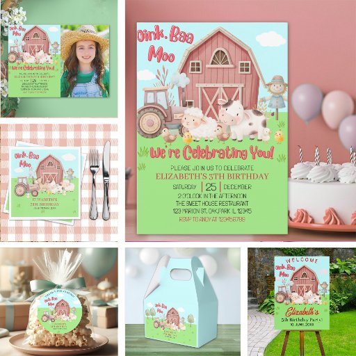 Farmyard Girl Birthday Photo – Cute Barn Animals Invitation