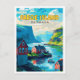 Faroe Island Denmark vintage travel illustration Postcard