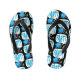 The flip flops arrived in a most colorful package which also had them double bagged in a black drawstring pouch which makes them great for gifting. They are a quality product with plenty of durability. The printing is vivid and true to that pictured on the web. Great look!