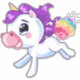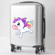 Contour-cut vinyl sticker of a kawaii unicorn farting a cloud of rainbow gas